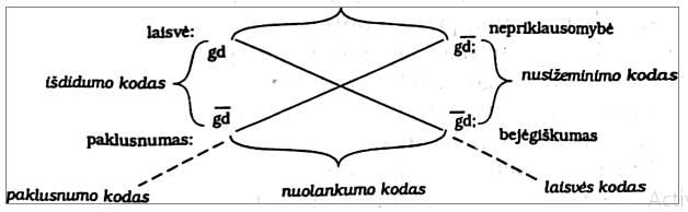 (Ženklu g žymimas galėjimas, d – darymas, g – negalėjimas. 3 – nedarymas.)